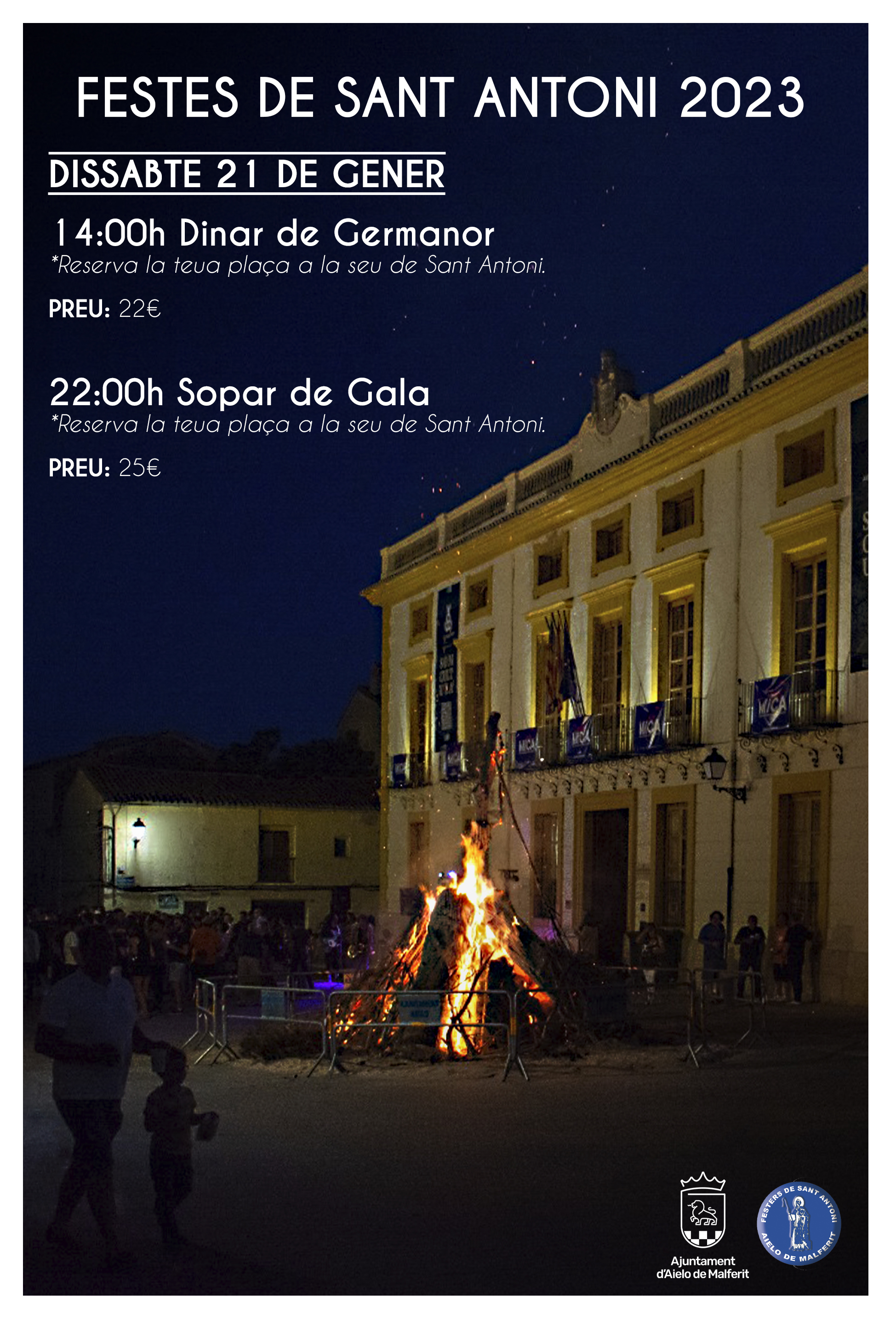 22 hores: SOPAR DE GALA obert a la població. Inscripcions en la Seu de Sant Antoni. - 25 euros