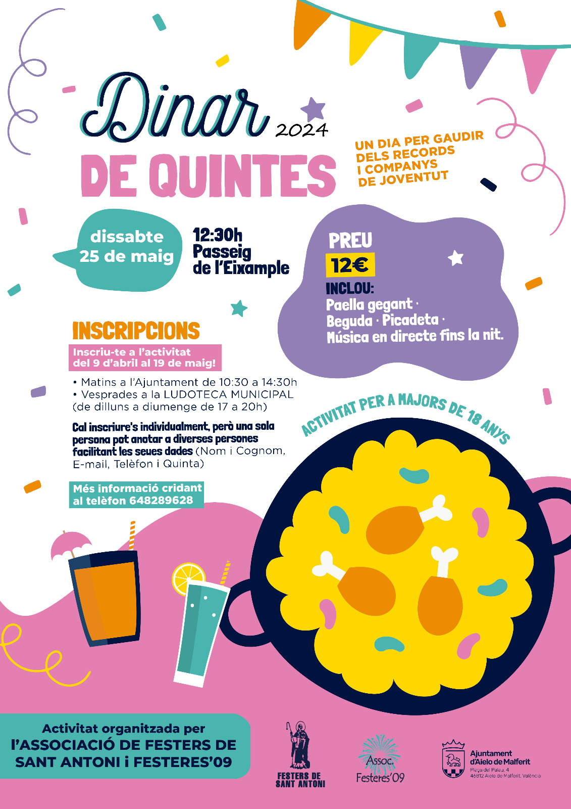 *Cal inscriure's individualment, però una sola persona pot anotar a diverses persones facilitant les seues dades (Nom i Cognom, E-mail, Telèfon i Quinta)