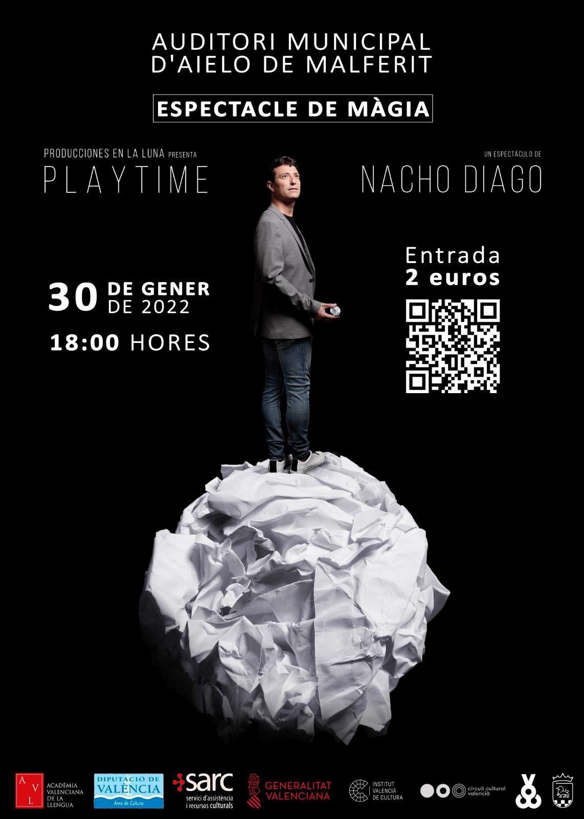SINOPSIS. Playtime ¡Ha llegado la hora de jugar! Nacho Diago, actor, mago y creativo multidisciplinar actúa en los más prestigiosos festivales de magia de toda España hasta que en 2005 gana el primer premio de magia en el XXVII Congreso Mágico Nacional, lo que le convierte en el campeón de España. Su magia sigue una línea de investigación donde el objeto cotidiano y común se transforma para convertirse en algo mágico e inesperado.