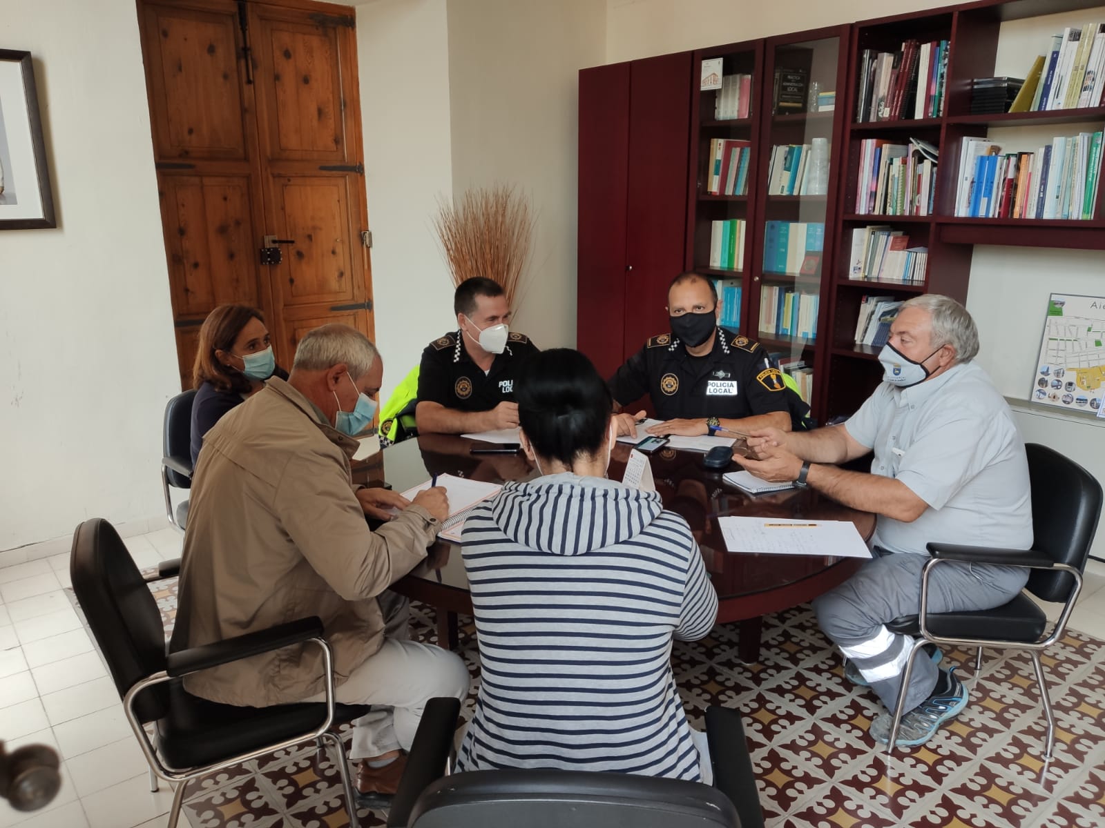 Aquest matí, l’Alcalde Juan Rafael Espí i la Regidora de Serveis Generals Livia Bumbu, s’han reunit a l’Ajuntament amb la Policia Local, l’encarregat de la Brigada d’Obres i Manteniment, el personal de neteja i els Tècnics Municipals per tal de coordinar la celebració de Tots Sants i establir el protocol davant la COVID-19.