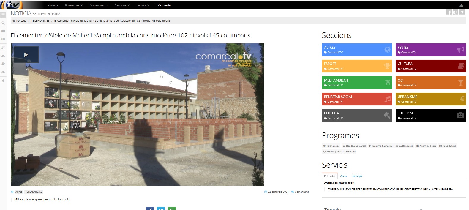 Aquesta ampliació de capacitat del cementeri permetrà oferir un millor servei a la ciutadania a més de respondre a la nova tendència consolidada els últims anys en què l’opció de la cremació va agafant força. Aquesta és una obra, com veiem, ja iniciada però hi ha altres a punt de fer-se també realitat com la millora de l’eficiència energètica al Grup Nou.