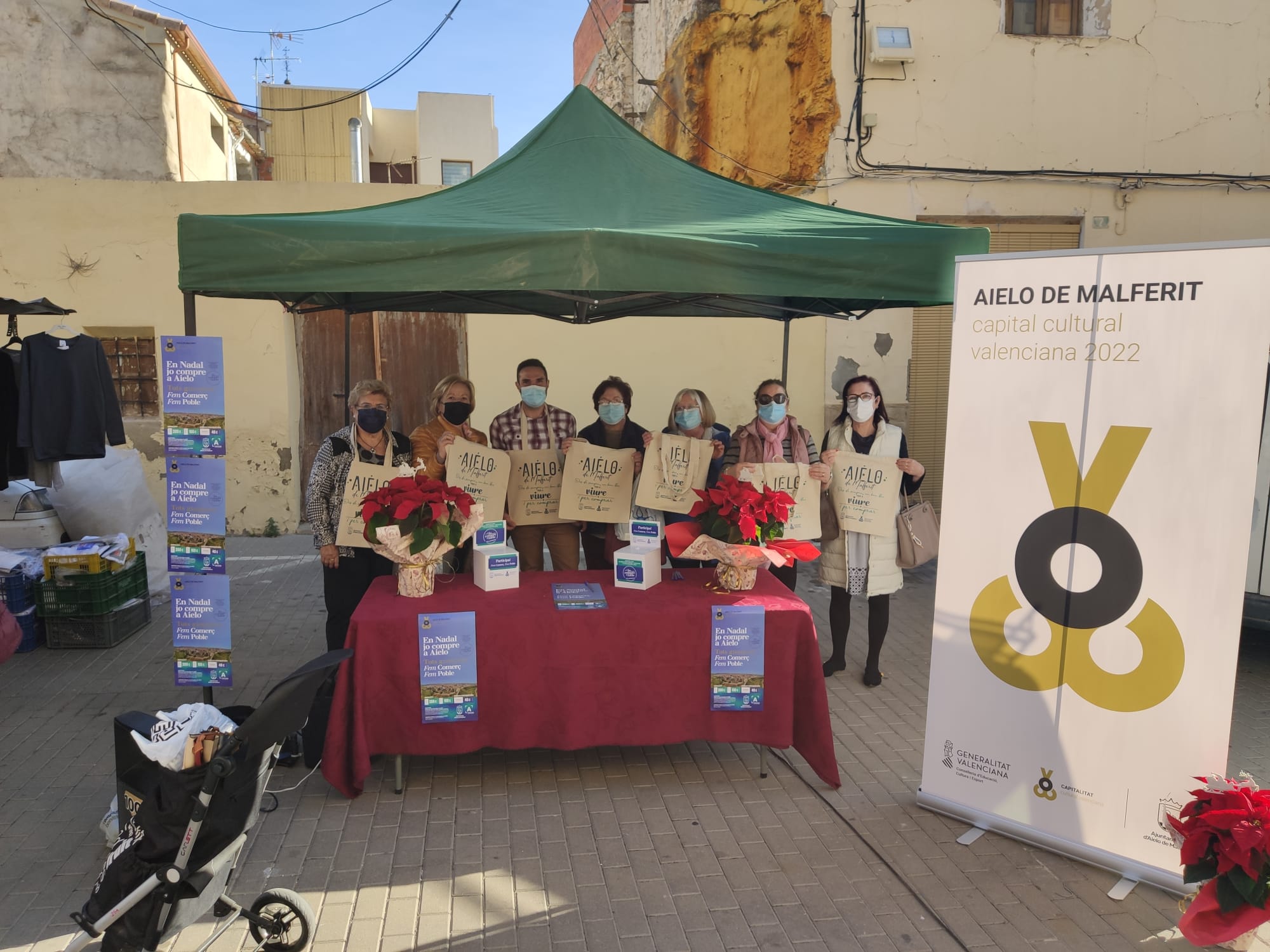 La capitalitat cultural, motiu de la campanya d'enguany, s'ha fet notar durant la jornada que ha estat acompanyada de música que a donat un toc nadalenc al mercat.