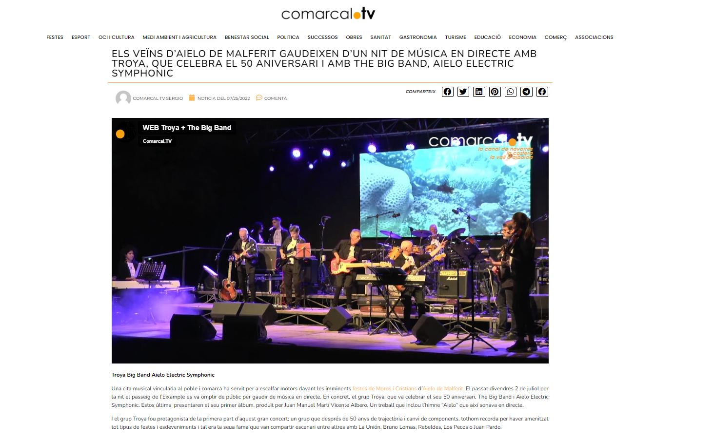 Notícia Comarcal TV: Els veïns d'Aielo de Malferit gaudeixen d'una nit de música en directe amb TROYA, que celebra el 50 aniversari i amb THE BIG BAND, Aielo Electric Symphonic.