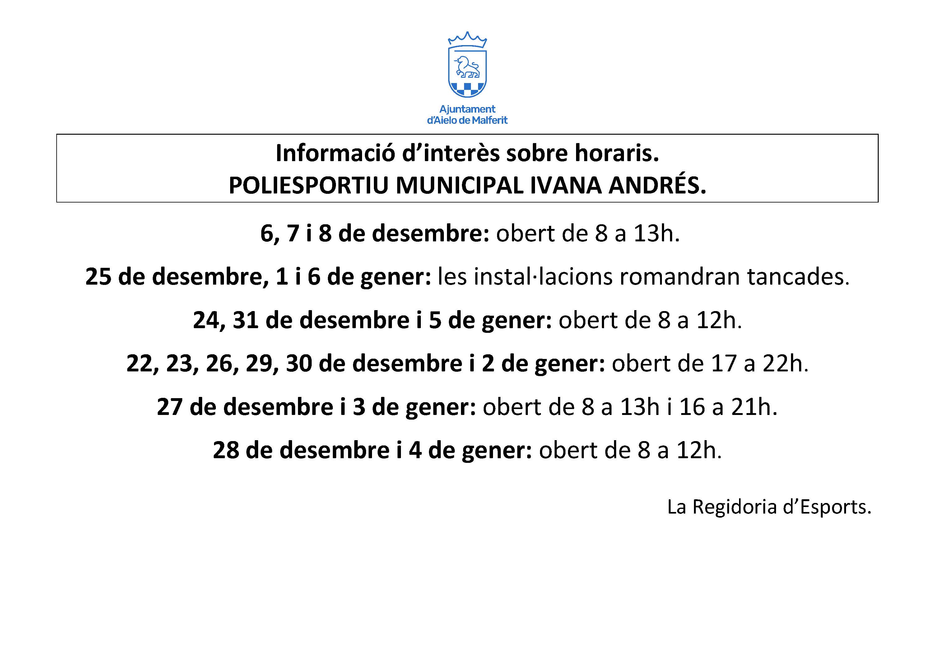 HORARIS POLIESPORTIU MUNICIPAL.