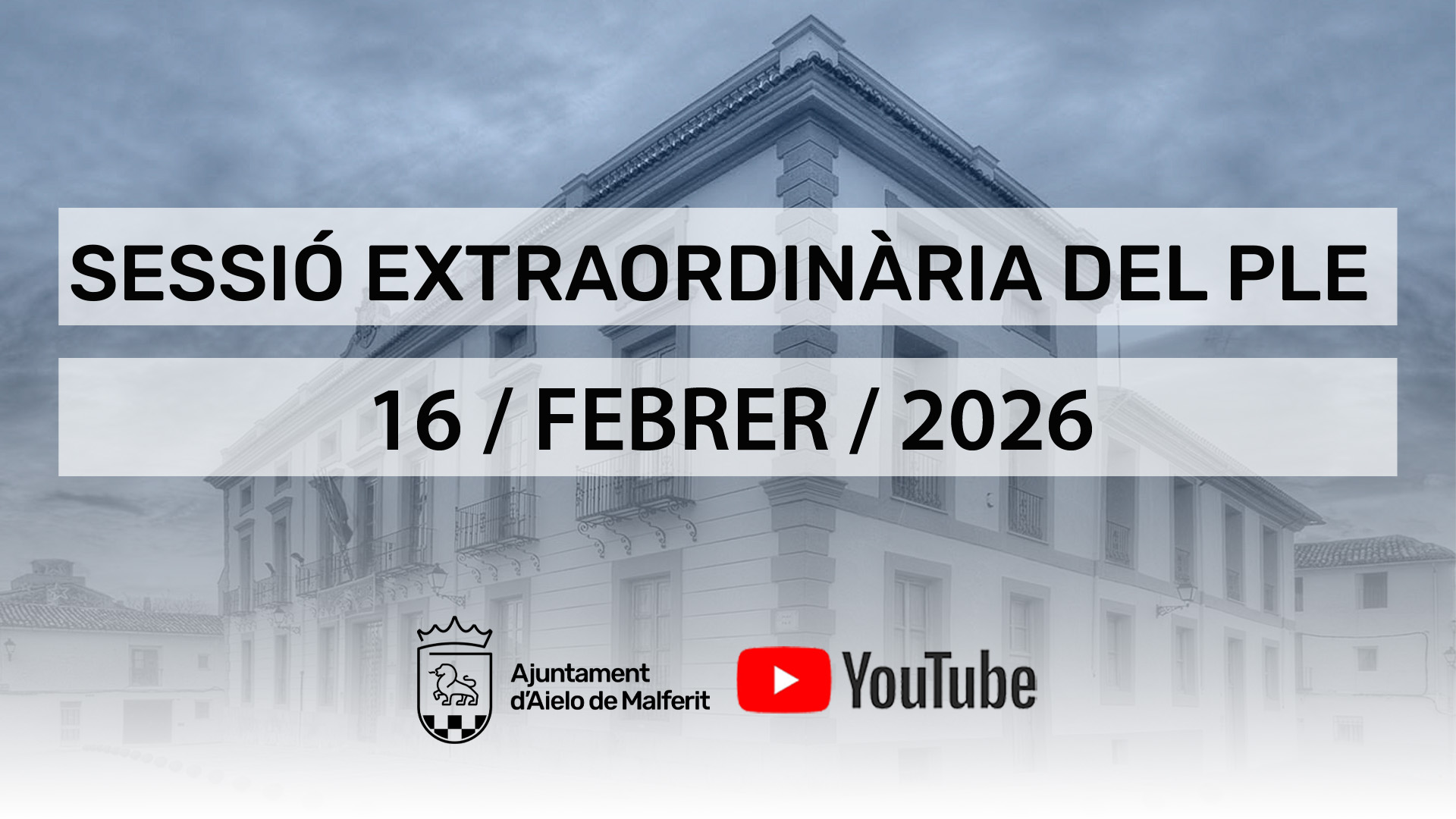 Dita sessió serà gravada i es retransmetrà en diferit pel canal oficial de Youtube de l'Ajuntament d'Aielo de Malferit.