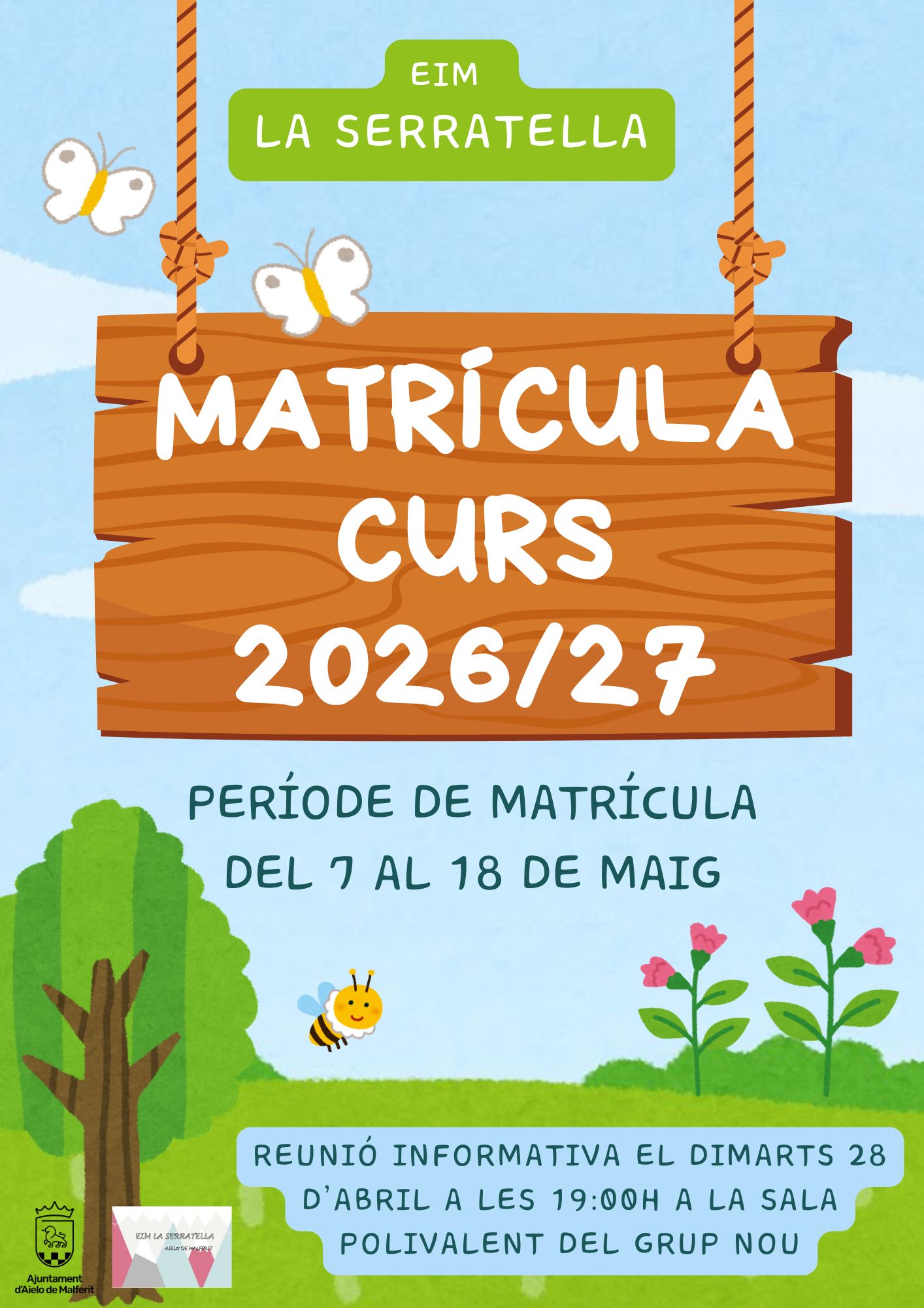 La reunió informativa tindrà lloc el proper dimarts 28 d’abril de 2026 a la Sala Polivalent del Grup Nou a les 19:00 hores, amb la finalitat de informar sobre el procés a seguir per  poder realitzar la matrícula en l’Escola Infantil Municipal La Serratella en el curs escolar 2026/2027.