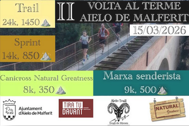 VTA 2026 VOLTA AL TERME D'AIELO diumenge 15 de març Aielo de Malferit - Passeig de l'Eixample Inscripcions obertes FENT CLIC ACÍ Modalitats Trail 24K 24K...