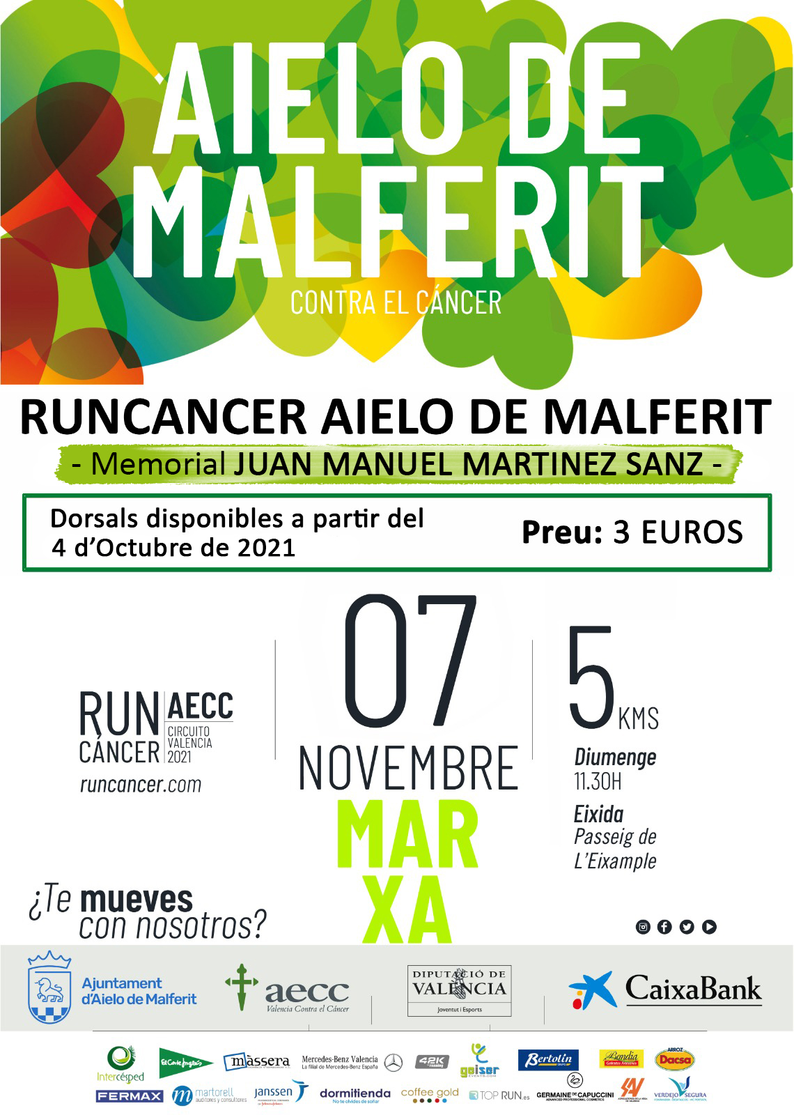 Participa a la marxa solidària RUN CANCER AIELO DE MALFERIT i col·labora per aconseguir ajuda per a la investigació contra la malaltia.