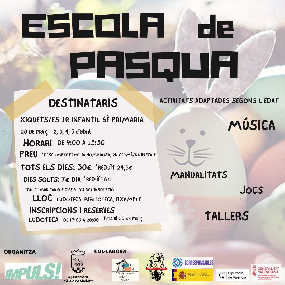 - INSCRIPCIONS: Fins al 20 de març a la Ludoteca Municipal.