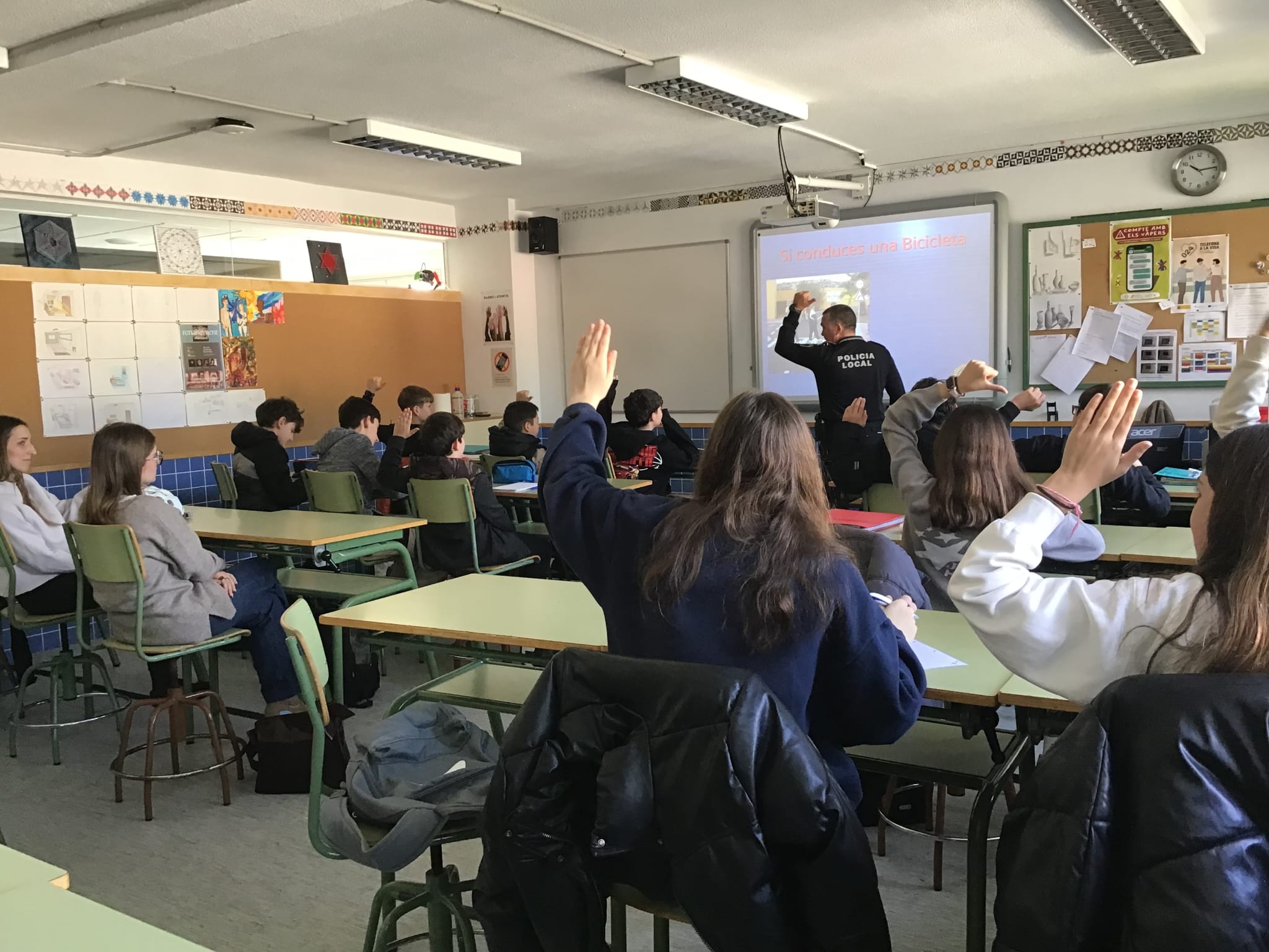 El passat 23 de març, l’alumnat de 1r d’ESO de l’I.E.S. Porçons va participar en una jornada formativa sobre normes bàsiques de circulació i seguretat viària, impartida per l’agent responsable de la formació de la Policia Local d’Aielo de Malferit.